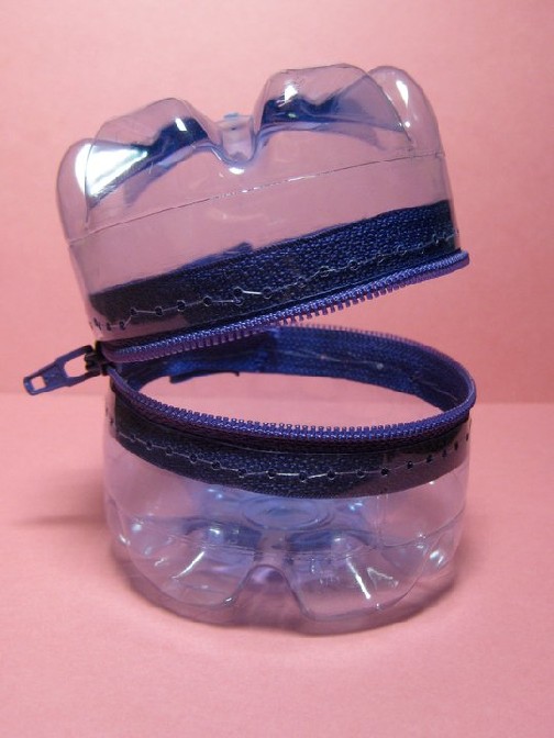 SEGUNDO PASO: con el cierre que mida de largo el diametro de la botella pega o cose cada extremo en las parte de la botella